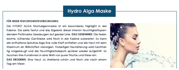 ØHydro Alga Maske, ca. 60 Min., ab 92 €